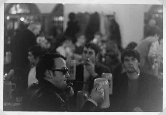 Jeunes touristes dans une taverne en Allemagne en 1968