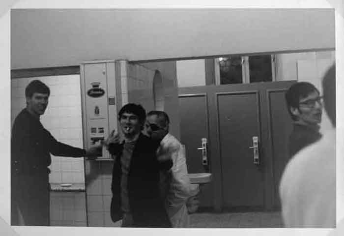 Jeunes touristes dans les toilettes d'un bar allemand en août 1968