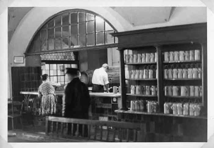Etagère de chopes dans un bar allemand en août 1968