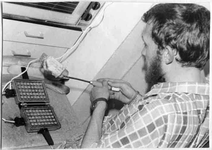 Jeune homme utilisant un gaufrier électrique entre 1968 et 1970