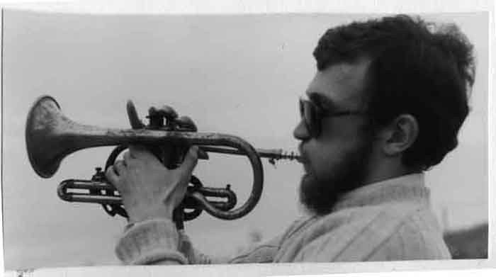 Jeune homme jouant du trombone à Aytré en mars 1969
