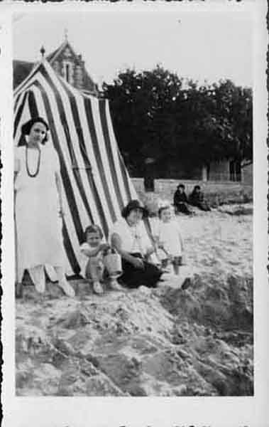 Une mère et ses enfants devant une tente sur la plage de Fouras en 1925