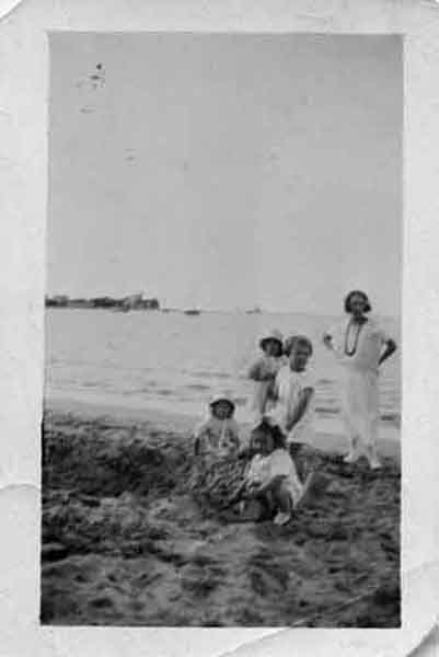 Une femme et ses enfants sur la plage de Fouras en 1924