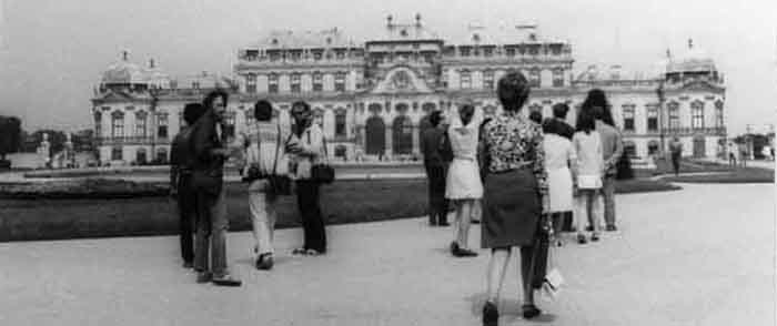 Jeunes touristes dans la ville de Vienne en Autriche en 1970