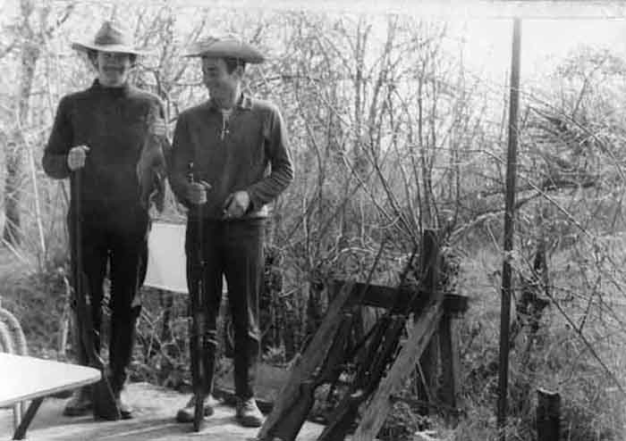 Deux chasseurs et une volaille morte en mars 1971 sur l'ïle d'Elle