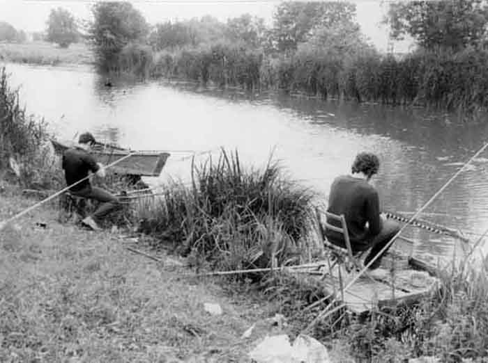 Pêcheurs assis au bord de l'eau à l'Île d'Elle en juillet 1971