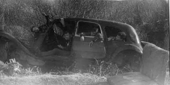 Jeunes adolescents faisant semblant d'êtres accidentés dans une voiture GM en 1965 à Aytré