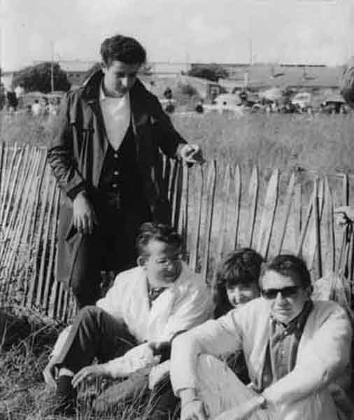 Jeunes hommes assis dans l'herbe au Motocross d'Aytré en mai 1965
