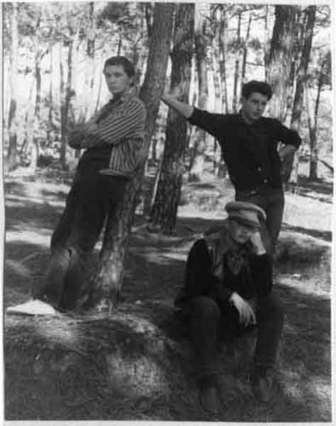 Trois jeunes se promenant dans les herbes hautes de la forêt de la Coubre en septembre 1965.