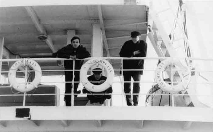 Trois jeunes sur le bac menant à l'île de Ré en novembre 1965