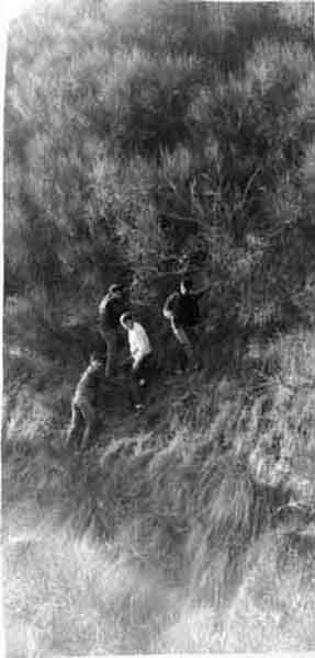 Quatre jeunes descendant un talus près du canal de Dompierre-sur-Mer en novembre 1965