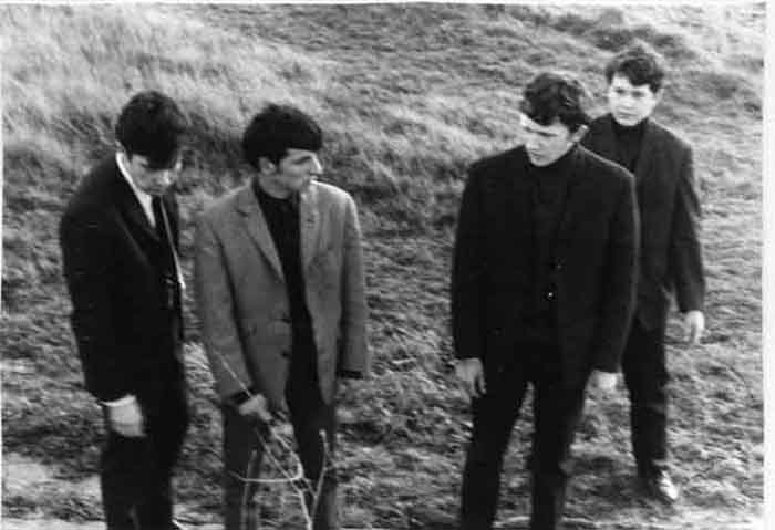 Quatre jeunes à la pointe du Chay pour les besoins les besoins du tournage du film amateur "À perdre haleine" réalisé par Jacky Yonnet et sa bande d'amis à Aytré en novembre 1965