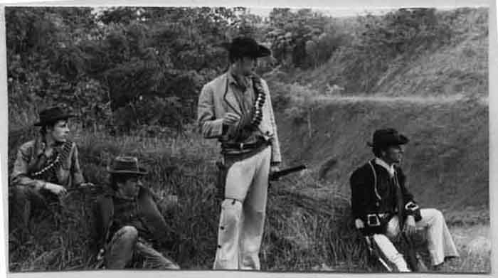 Jeunes hommes déguisés en cow-boy pour les besoins du tournage du film amateur "Les six rebelles" réalisé par Jacky Yonnet