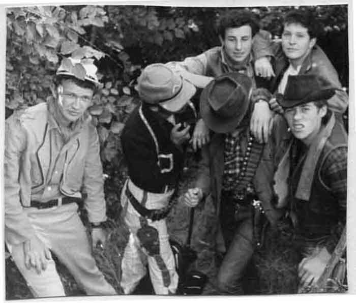 Jeunes hommes déguisés en cow-boy pour les besoins du tournage du film amateur "Les six rebelles" réalisé par Jacky Yonnet et sa bande d'amis