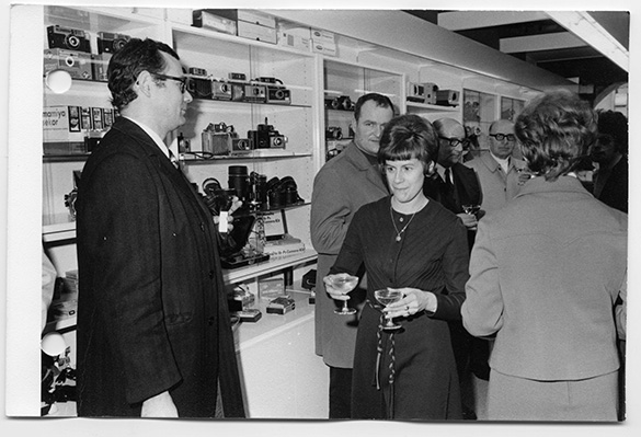 Personnel et invités de la Serpo lors de la soirée d'inauguration du magasin d'optique à La Rochelle en 1971