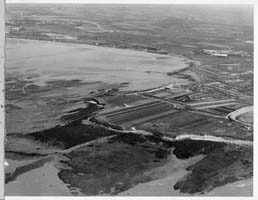 Vue aérienne de la pointe du Chay. Au premier plan, un petit bout de la plage d'Angoulins, et la plage d'Aytré en fond. A gauche l'estran.