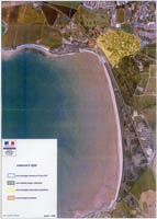 Plan donné par la mairie d'Aytré 2 jours après la tempête aux habitants après le passage de la tempête Xinthia le 28 février 2010. Ce plan montre une vue aérienne de la plage d'Aytré: en jaune: les maisons en zone inondable