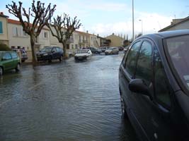 Rue inondée à Aytré le 28 février 2010 après le passage de la tempête Xynthia