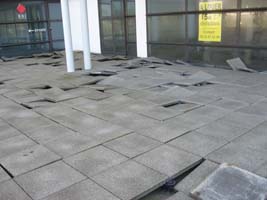 Dalles d'une terrasse soulevées par le passage de la tempête Xynthia le 28 février 2010 dans une ruelle dans le quartier des Minimes à La Rochelle