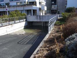 Garage inondé entre la rue Amérigo Vespucci et la rue des Amériques à la Ville en Bois à La Rochelle le 28 février 2010 après le passage de la tempête Xynthia