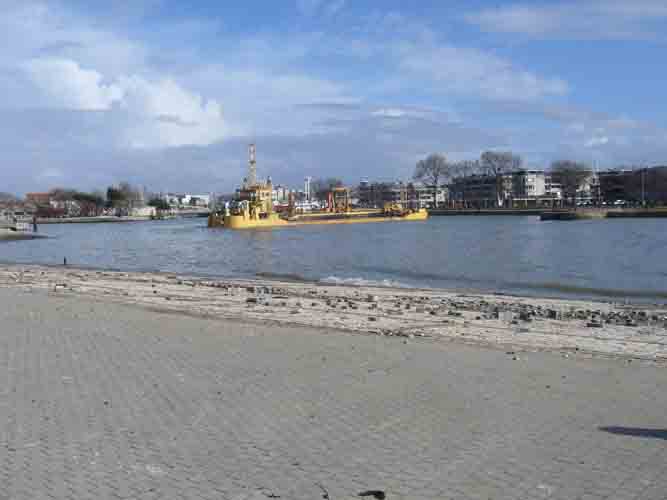 Bateau La drague (Marie-Salope) dans le chenal du port après le passage de la tempête Xynthia le 28 février 2010