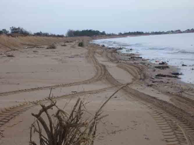 Plage d'Aytré le lendemain de la tempête (coefficient 116) dévastée par la tempête. Les dunes se sont reculées après le passage de la tempête Xynthia le 28 février 2010
