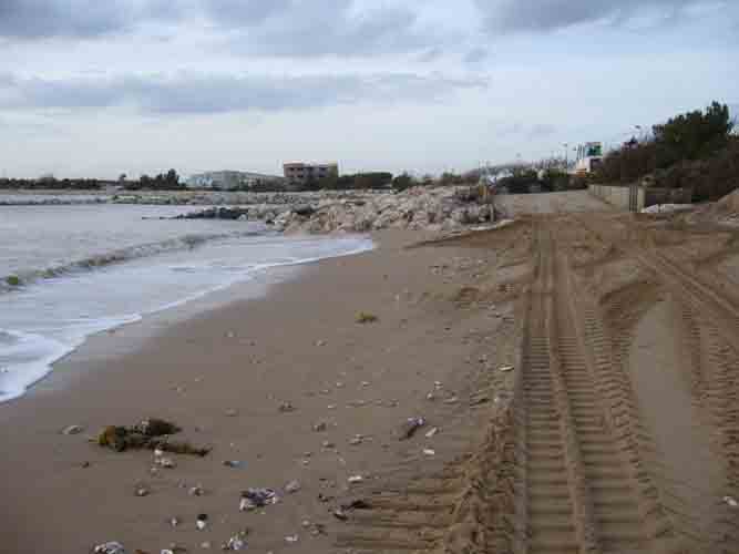 Plage d'Aytré le lendemain de la tempête (coefficient 116) dévastée par la tempête. Les dunes se sont reculées après le passage de la tempête Xynthia le 28 février 2010