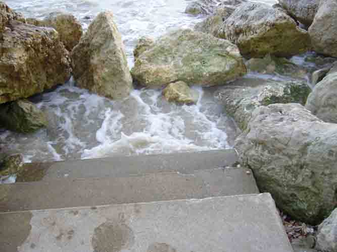 Escalier menant à la plage d'Aytré bouché par les rochers déplacés par le passage de la tempête Xynthia le 28 février 2010
