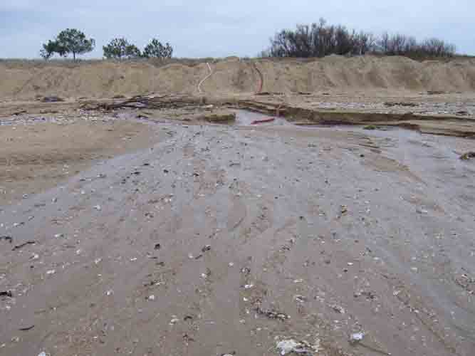 Pompes pour vider l'eau derrière la dune pour la relancer dans l'eau sur la plage d'Aytré après le passage de la tempête Xynthia le 28 février 2010