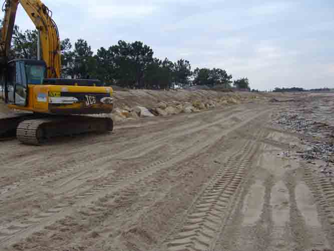 Pelleteuse sur la plage d'Aytré après le passage de la tempête Xynthia le 28 février 2010