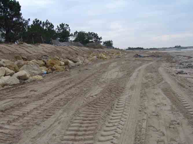 Traces d'une pelleteuse sur la plage d'Aytré après le passage de la tempête Xynthia le 28 février 2010