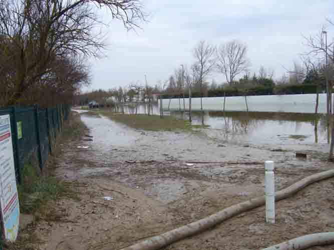 Route près d'un camping inondé après le passage de la tempête Xynthia le 28 février 2010 à Aytré