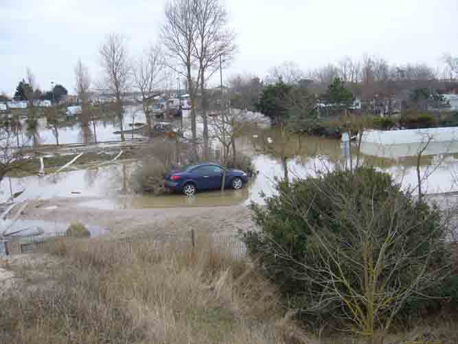 Camping La Lizotière de la plage d'Aytré inondé après le passage de la tempête Xynthia le 28 février 2010.