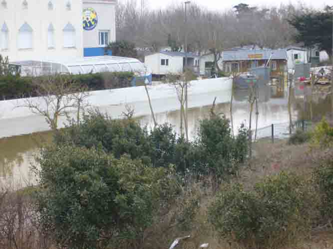 Route inondée entre la plage et le camping de la plage d'Aytré après le passage de la tempête Xynthia le 28 février 2010.