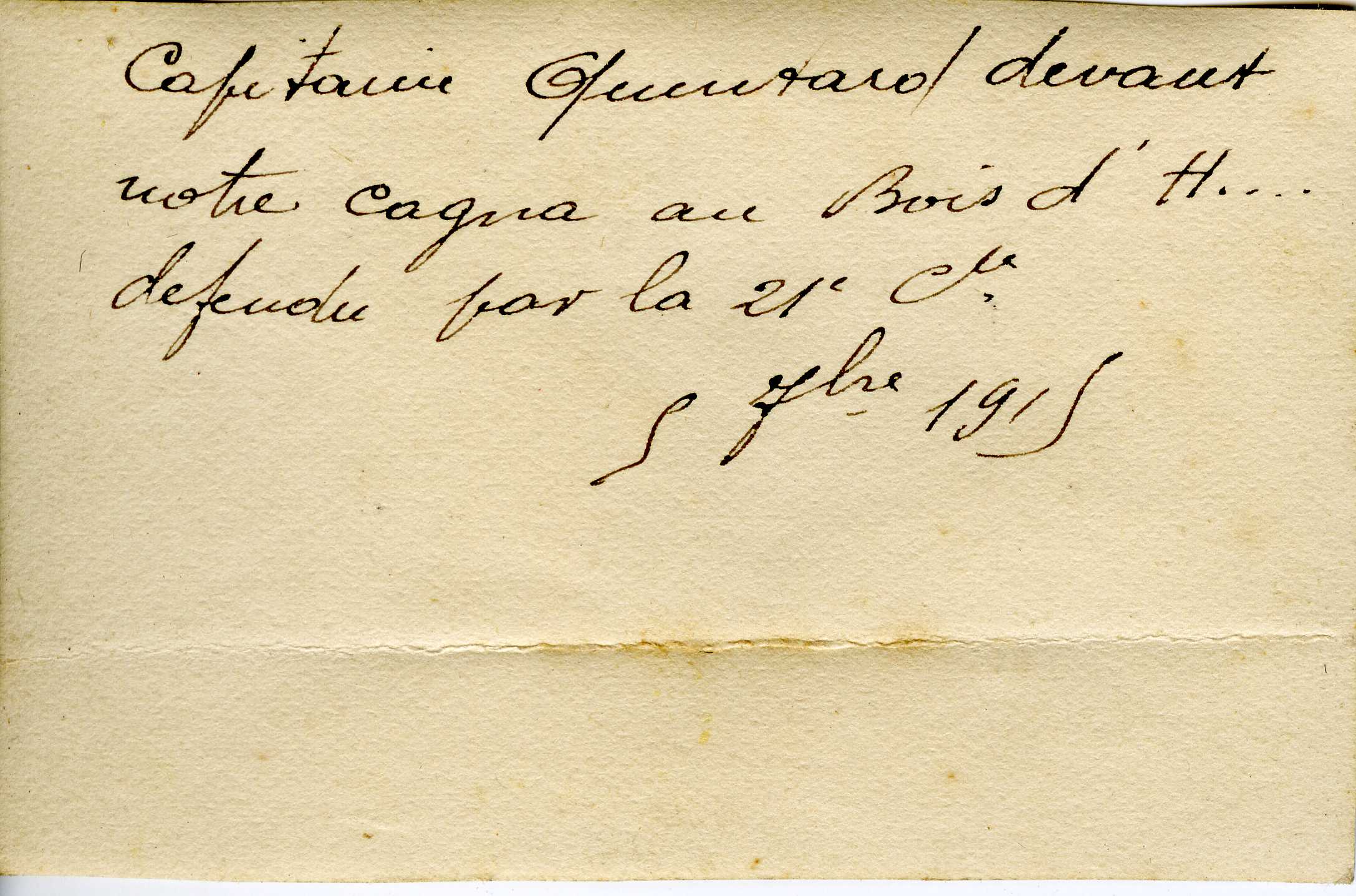 Capitaine Quintard devant une cagna (abri militaire) pendant la Première Guerre mondiale.
