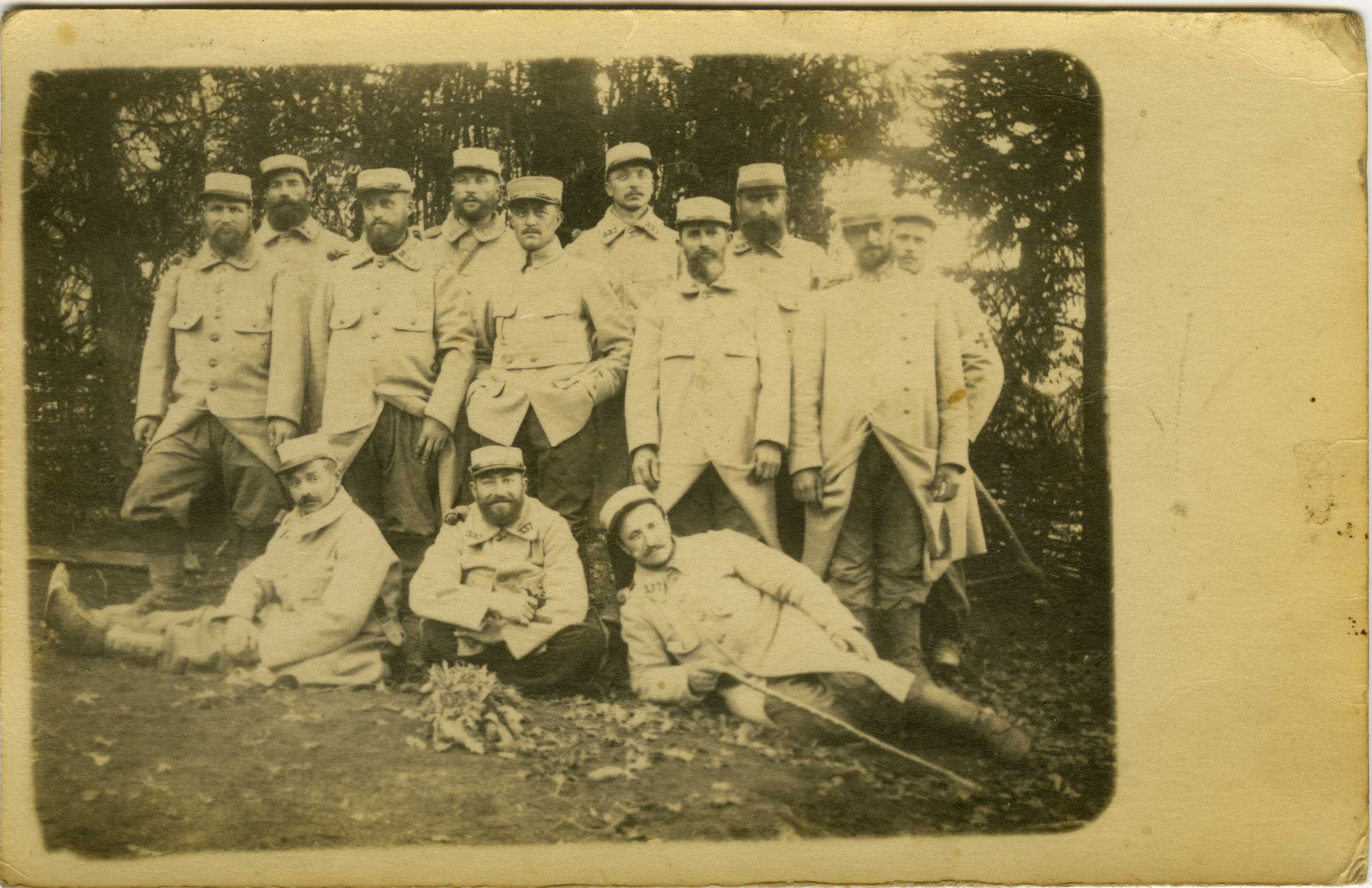 12 soldats et un gradé durant la Première Guerre mondiale.