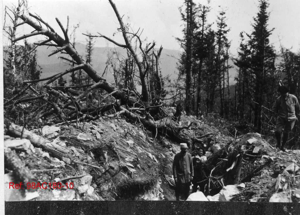Champ de bataille de la Première Guerre mondiale. On y voit :