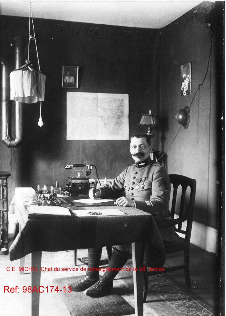 Chef du service de renseignement de la VIIIᵉ Armée dans son bureau pendant la Première Guerre mondiale