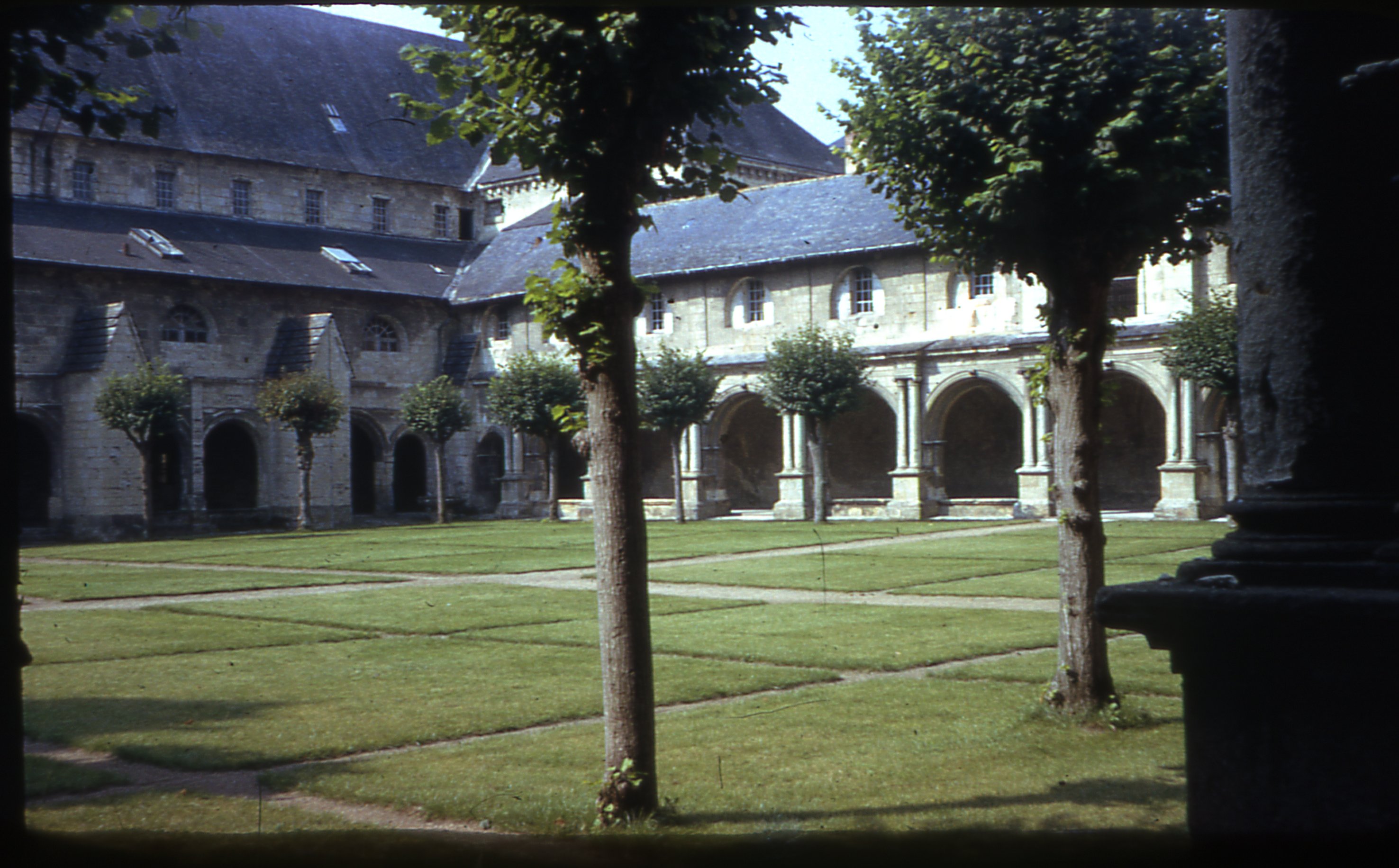 Cloître de l'Abbaye royale de Fontevraud en Val-de-Loire dans les années 1960.