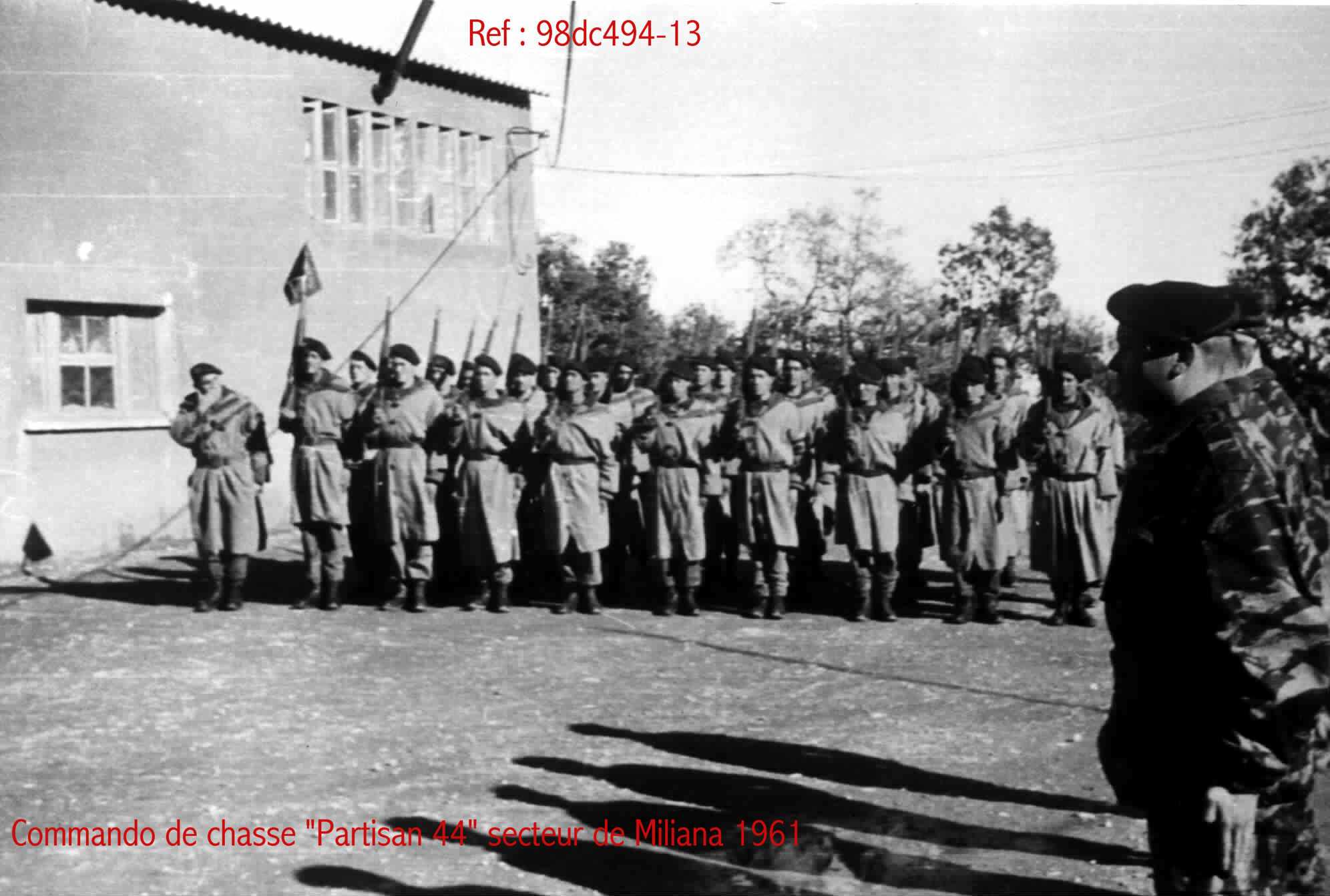 Commando de chasse "Partisan 44" dans le secteur de Miliana lors d'une inspection ou d'un rassemblement.