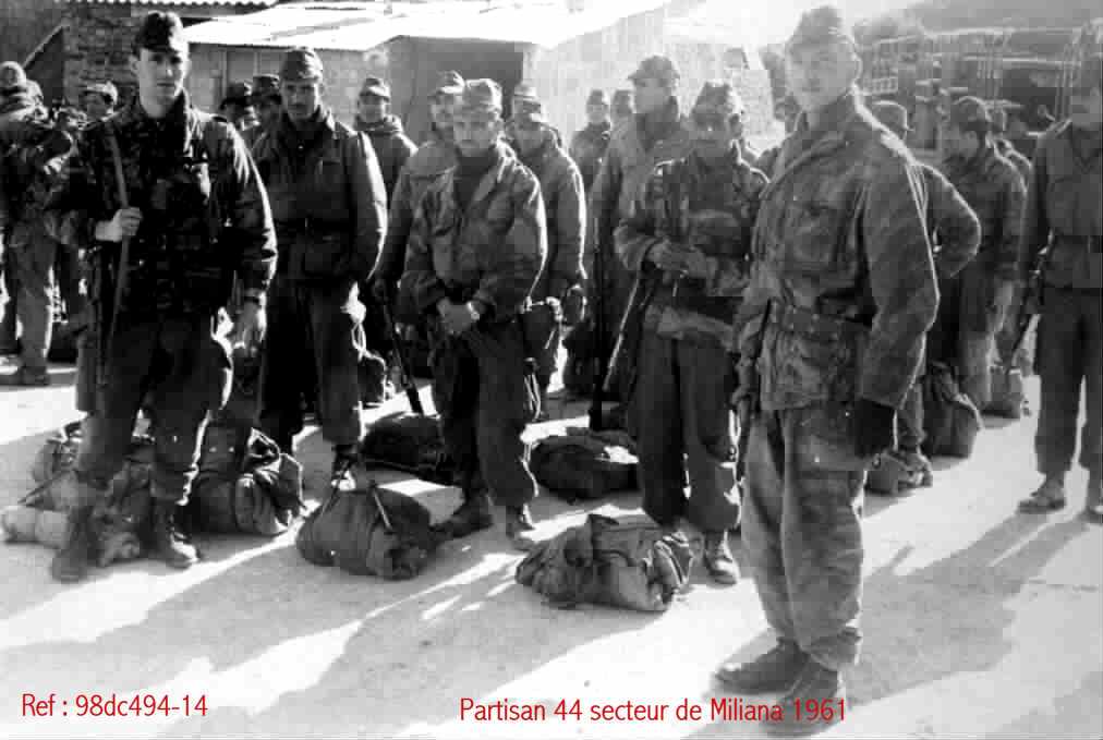 Commando de chasse "Partisan 44" en tenue, avec leurs sacs au sol.