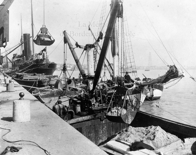 Déchargement de gabares aux quais de Bordeaux