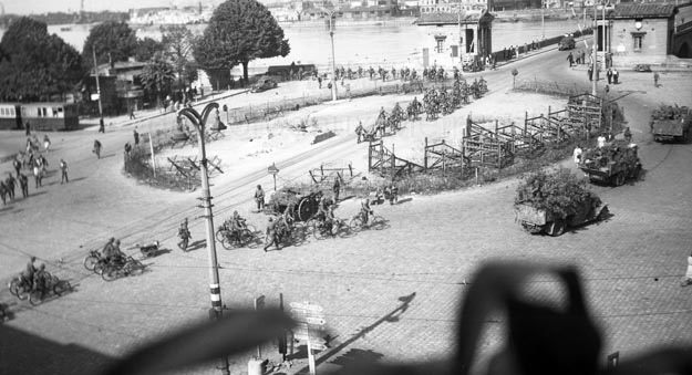 Reportage photographique pris sur la place Bir Hakeim montrant le départ de l'armée allemande à l'approche de l'armée alliée de libération.
