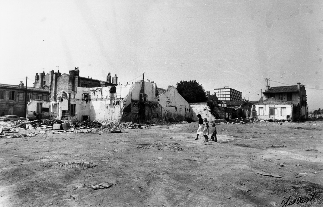 Reportage de six photos sur les derniers habitants et les dernières habitations du quartier Mériadeck en 1976.