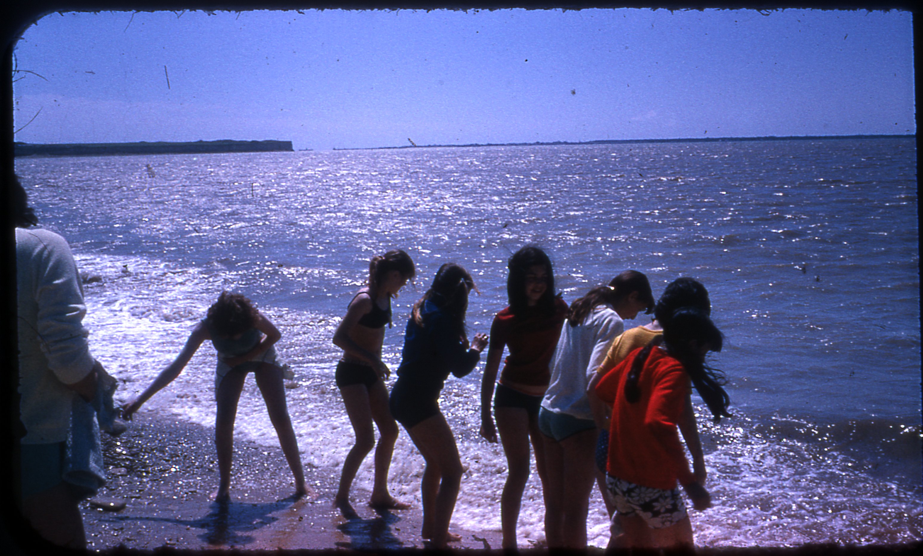 Des adolescentes vont dans la mer à l'Houmeau en 1969.