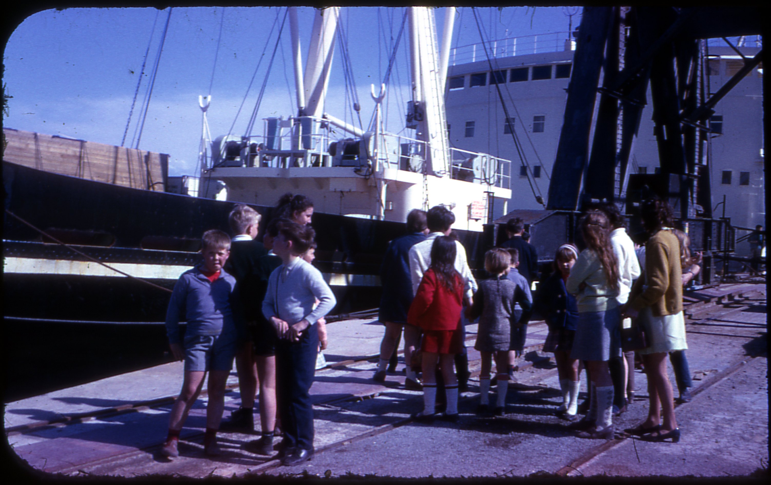 Des enfants devant un bateau en 1969