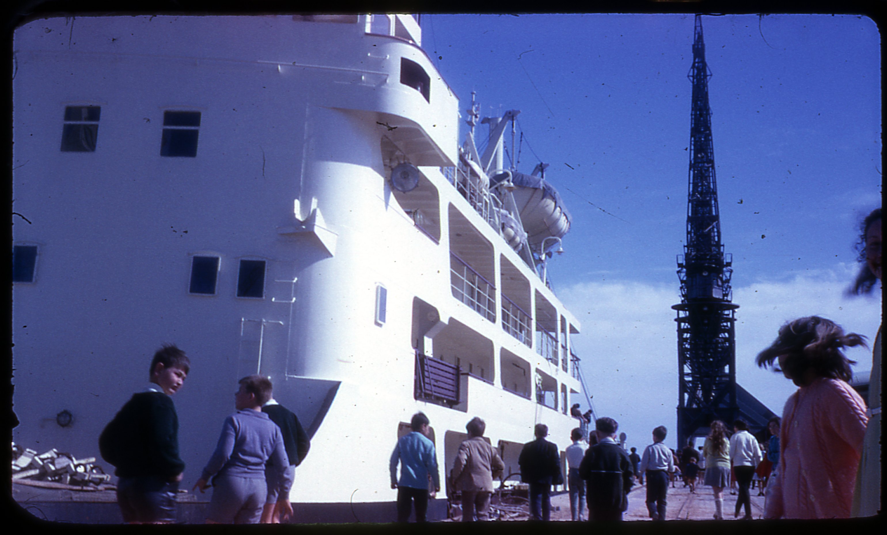 Des enfants devant un navire en 1969