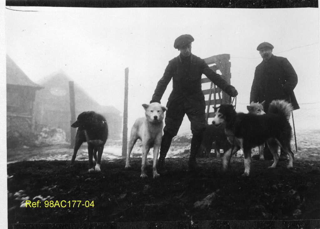 Des hommes avec des chiens de traîneau.