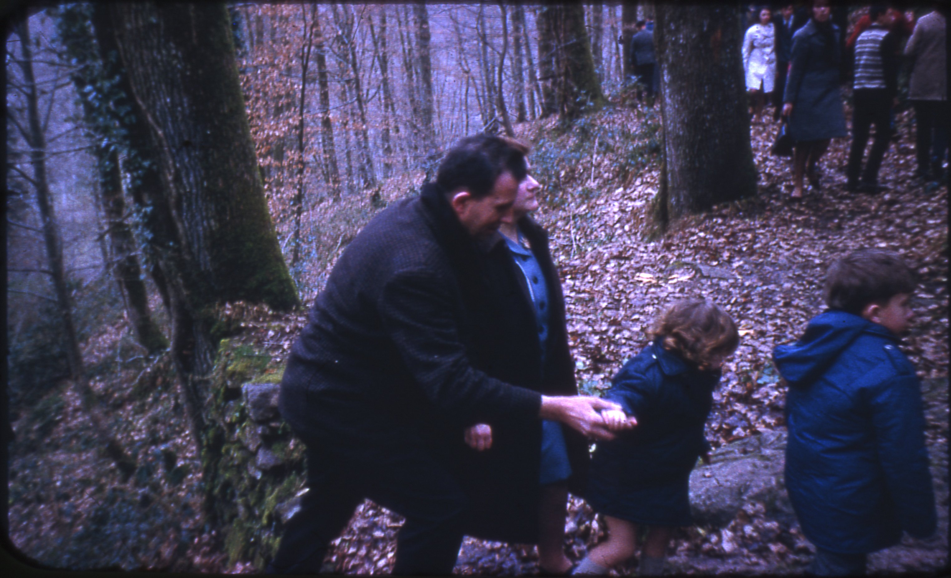 Des personnes sont dans les bois dans les années 1960-1970.