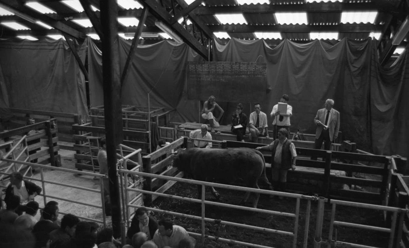 Une vente de taureaux à Lanaud, en Haute-Vienne, en juin 1990.